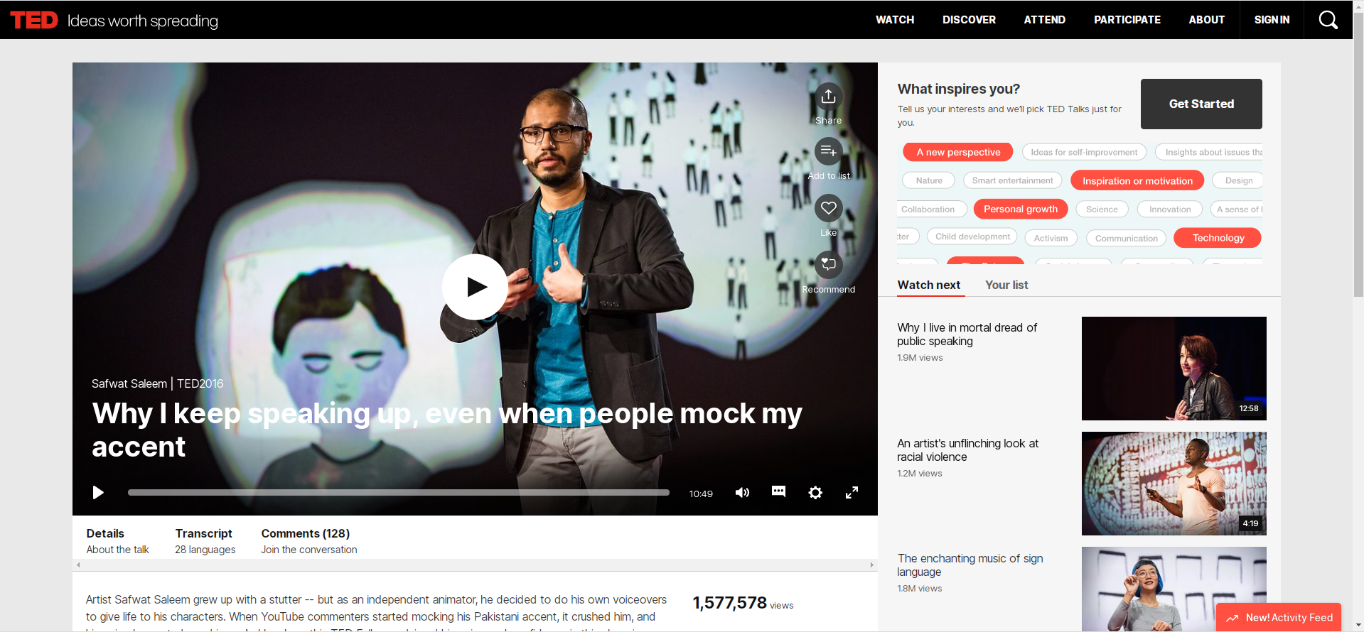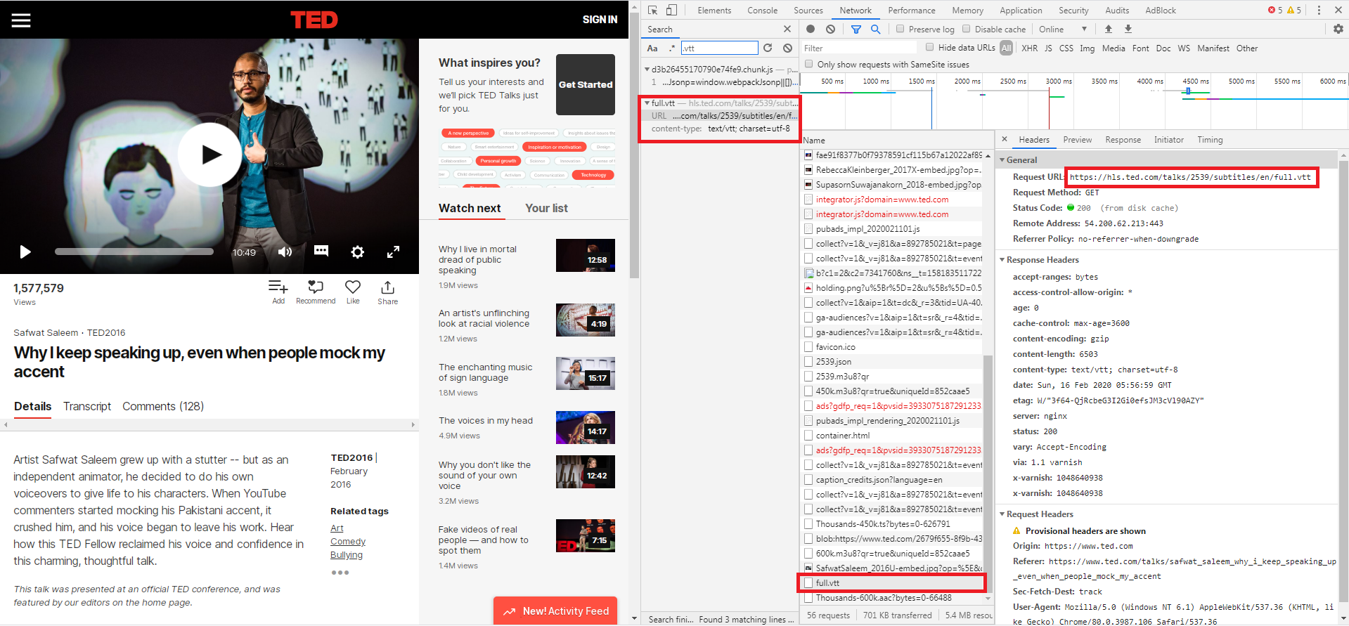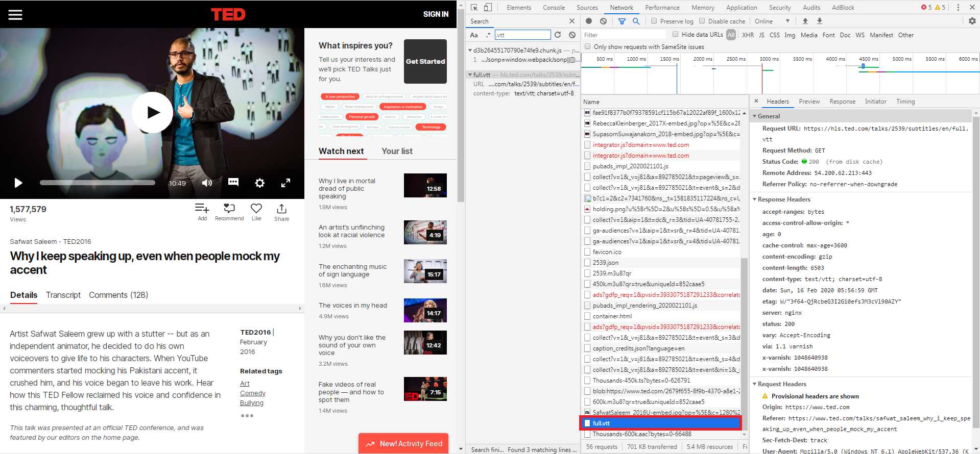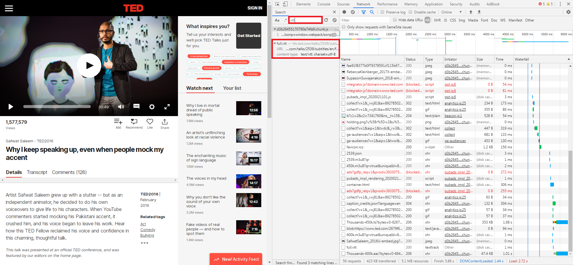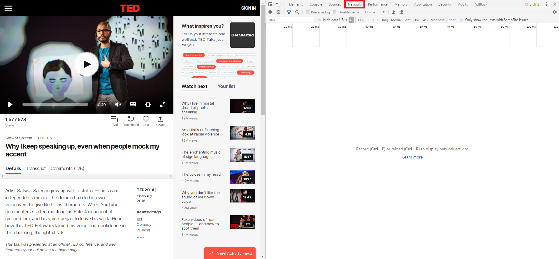 1. 크롬 브라우저로 테드 강연 페이지에 들어간다.