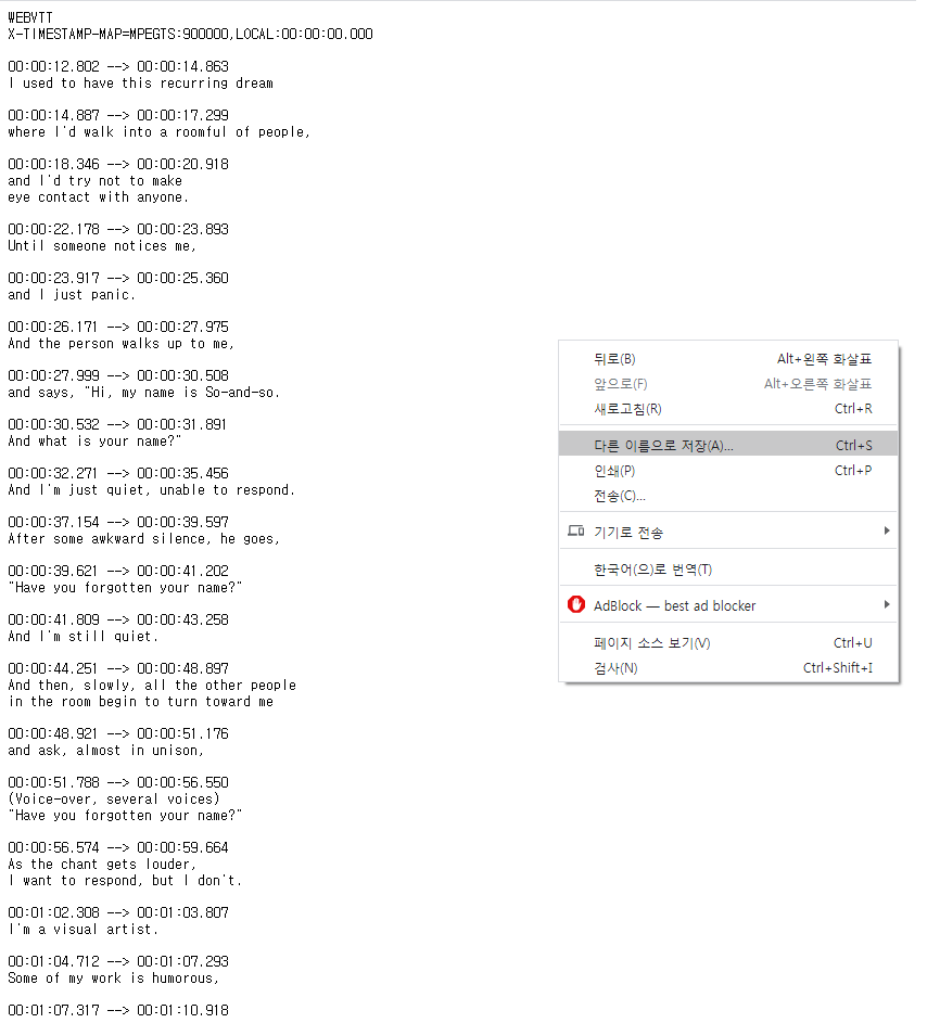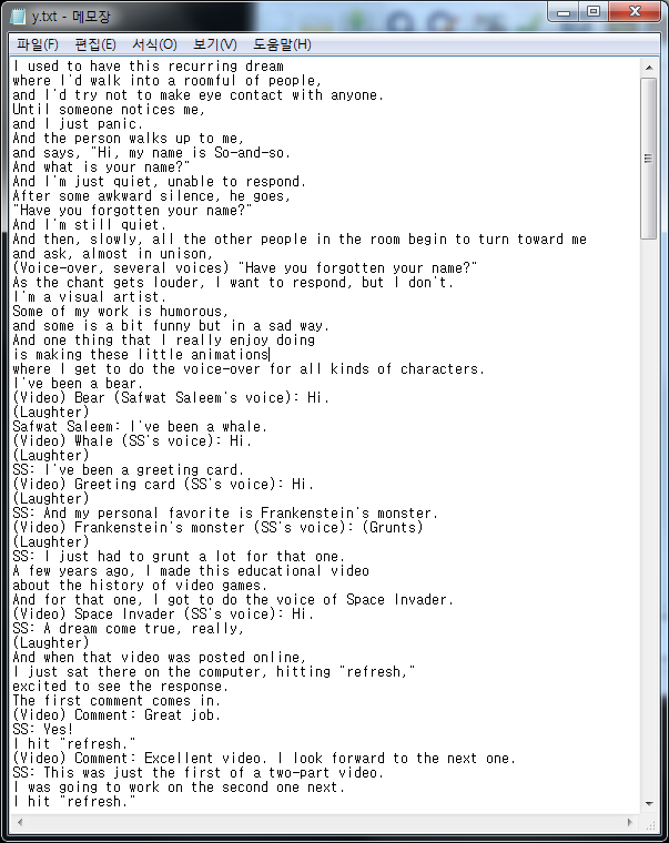 이 강연을 보면서 Dictation을 하거나 쉐도잉을 할 때에는 스크립트가 꼭 필요한데,