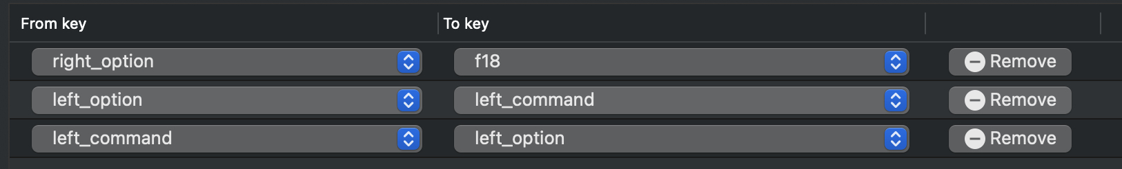 이제 맥에서도 같은 키를 사용하기 위해 Karabiner에서 아래와 같이 설정을 해준다.